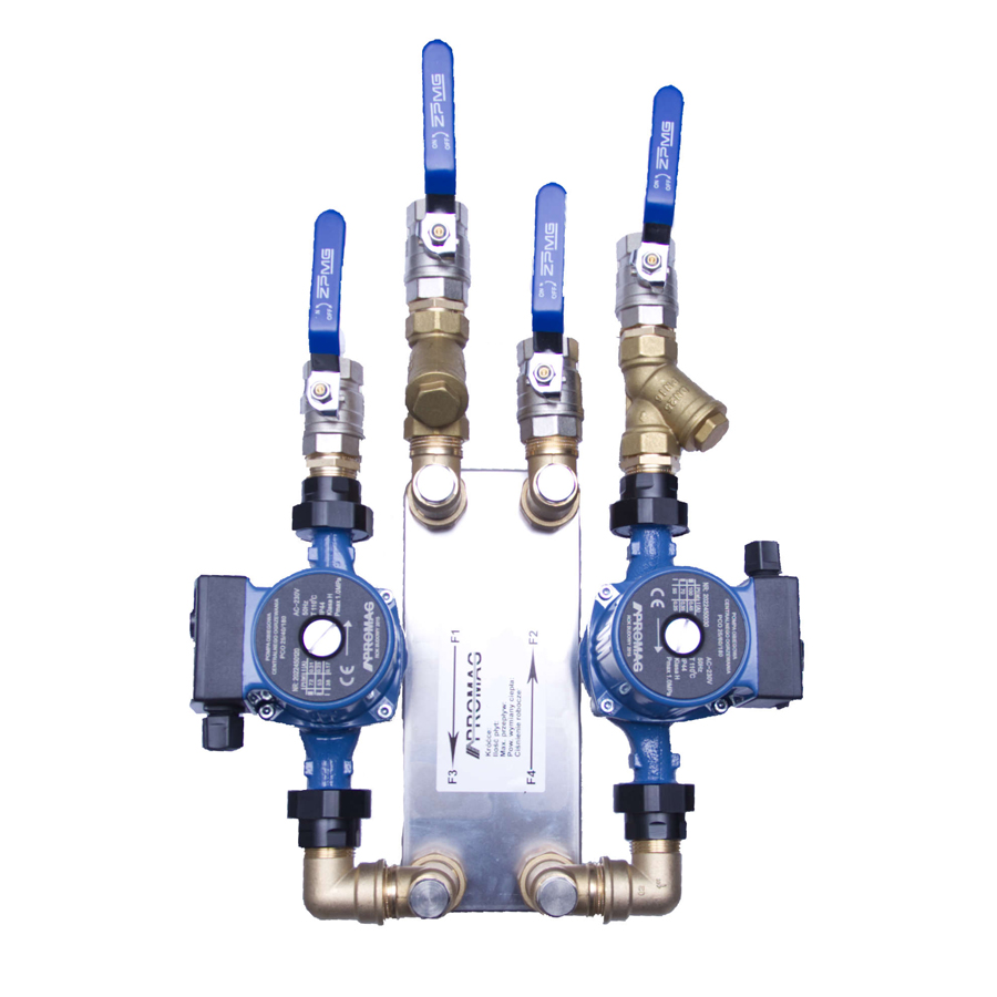 Zestaw “S” wymiennik + 2x pompa + armatura 25kW 3/4″